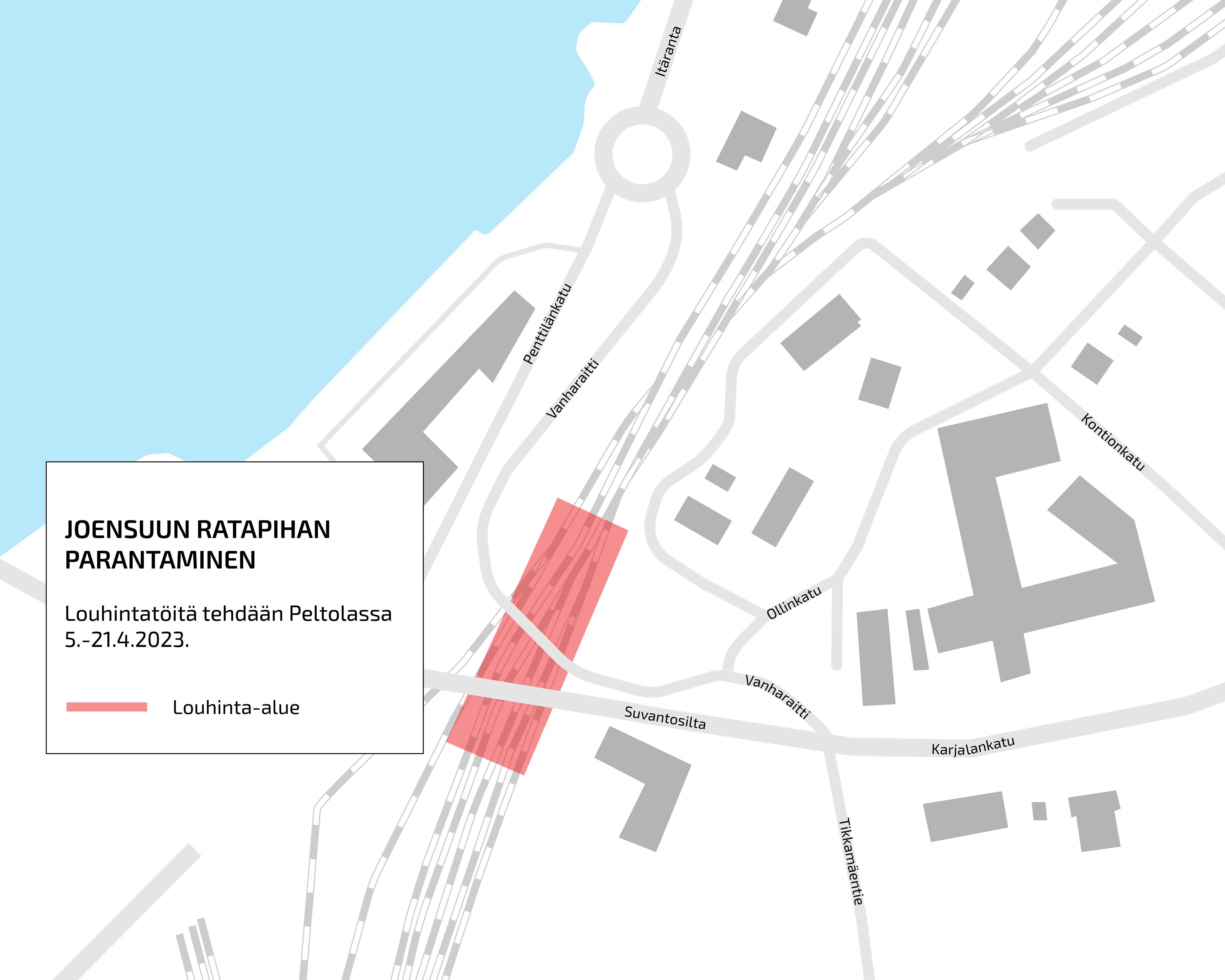 Joensuun ratapihalla, Peltolan alueella louhitaan kalliota 5.–21.4.2023 osana ratapihan parantamishanketta. Työt tehdään arkisin kello 07–21 välisenä aikana. Louhinta ei vaikuta liikennejärjestelyihin.