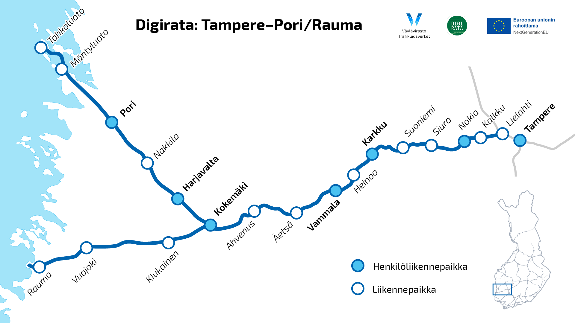 Koko Suomen junien kulunvalvonnan uudistava hanke aloittaa rakentamistyöt Tampereen, Porin ja Rauman välisiltä rataosuuksilta syyskuussa. Työt näkyvät maastossa, mutta eivät toistaiseksi vaikuta henkilöjunaliikenteeseen.