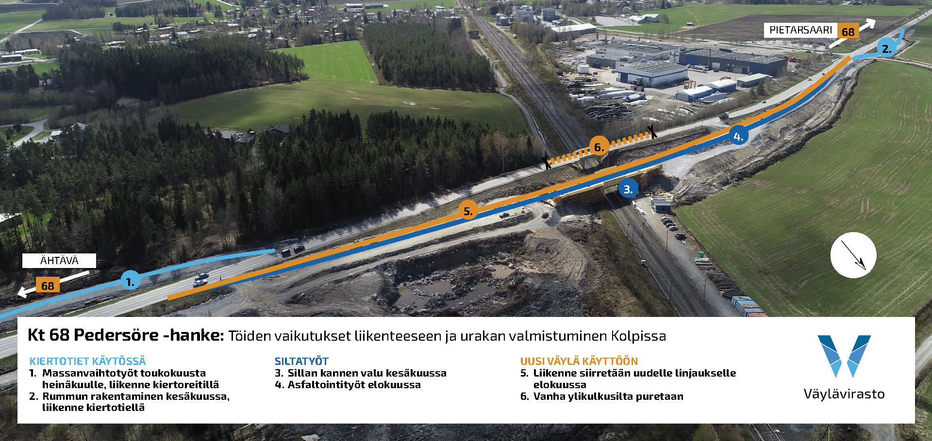 Kantatie 68 on Virroilta Pietarsaareen johtava tieyhteys, joka yhdistää valtatiet 23 ja 8. Kantatie 68 on tärkein yhteys Pietarsaaren kaupungista ja satamasta valtatielle 8 ja sisämaan suuntaan. Kt 68 Pedersöre -hankkeessa rakennetaan Pedersören Kolppiin uusi rautatien ylikulkusilta, sekä parannetaan valtatien 8 ja kantatien 68 eritasoliittymä Edsevössä. Myös pyöräilyn ja jalankulun väyliä parannetaan urakan yhteydessä. Hankkeen kustannukset ovat Edsevön osalta 5,5 ja Kolpin osalta 5,2 miljoonaa euroa.
