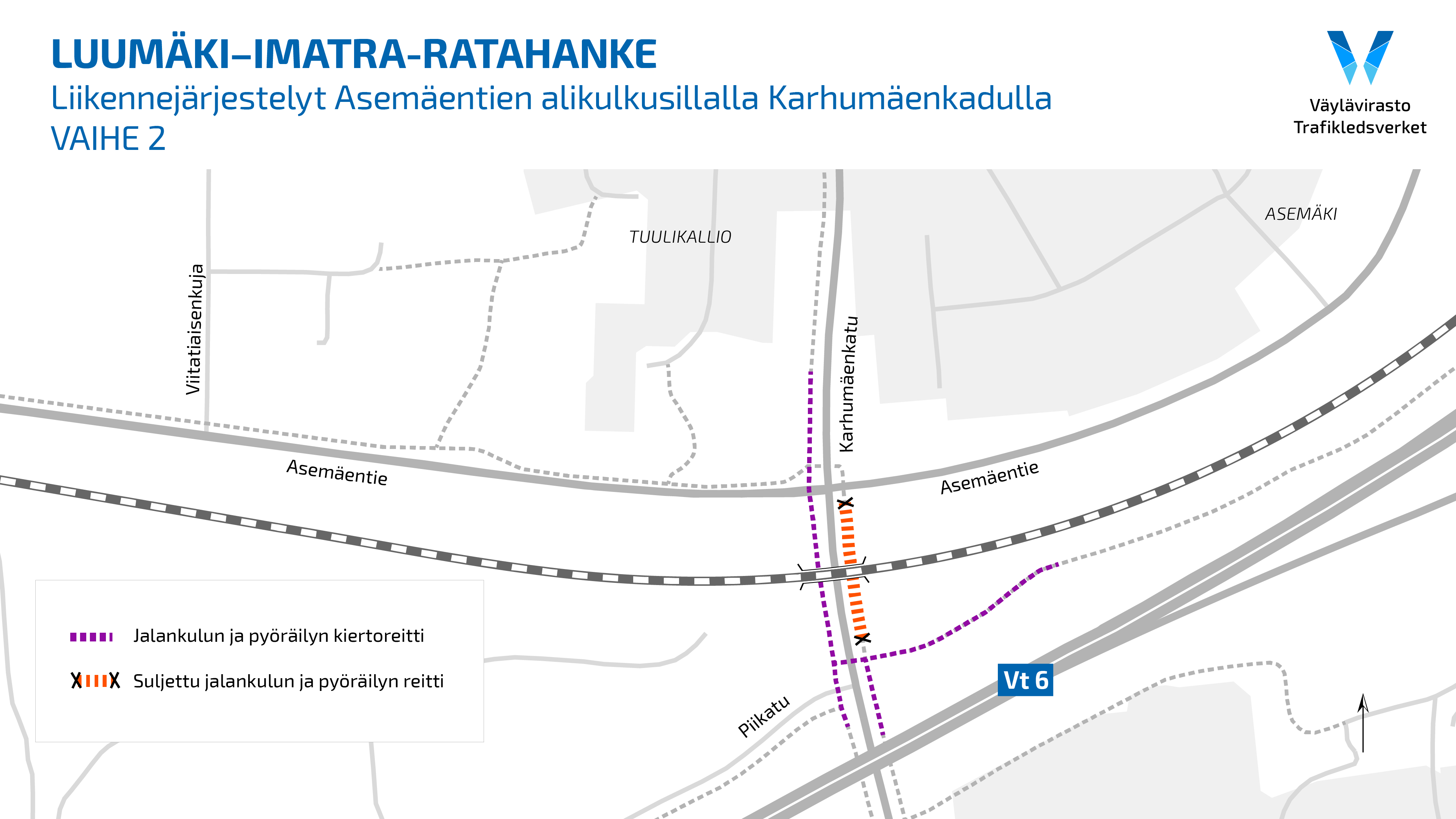 Asemäentien alikulkusillan kohdalla Karhumäentiellä Imatralla aloitetaan työt, jotka vaikuttavat sillan jalankulun ja pyöräilyn väyliin loka-marraskuussa. Työt ovat osa Luumäki–Imatra-ratahankeen viimeisteleviä töitä.