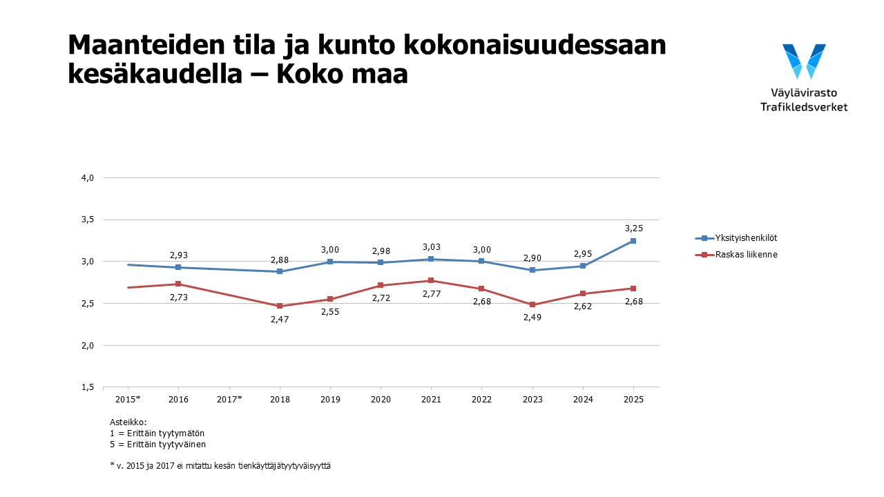 kuvaaja-kokonaistyytyvaisyys-maanteiden-tilaan-ja-kuntoon-kesakaudella-2015-2025.png