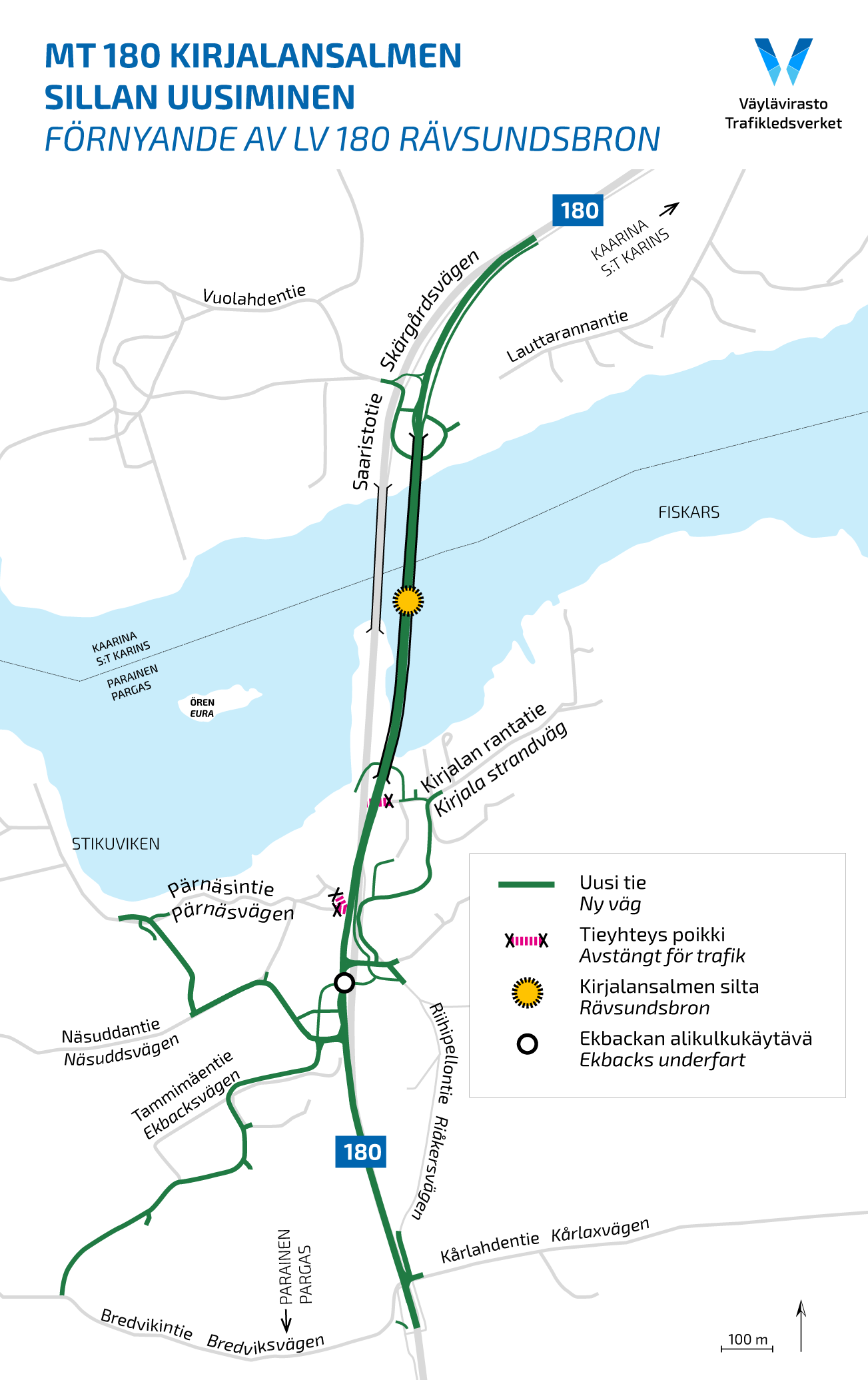 Mt 180 Kirjalansalmen ja Hessundinsalmen siltojen uusiminen -hankkeen tavoitteena on turvata ainoan maantieyhteyden säilyminen entistä parempana Paraisille ja Turunmaan saaristoon. Lisäksi mahdollistetaan alueen valtakunnallisesti merkittävän teollisuuden HCT-kuljetukset. Hanke myös tukee Paraisten elinkeinoelämän ja maankäytön kehittämistä sekä lisää liikenteen turvallisuutta ja asumisviihtyisyyttä. Hankekokonaisuuden kustannusarvio on 128 miljoonaa euroa.