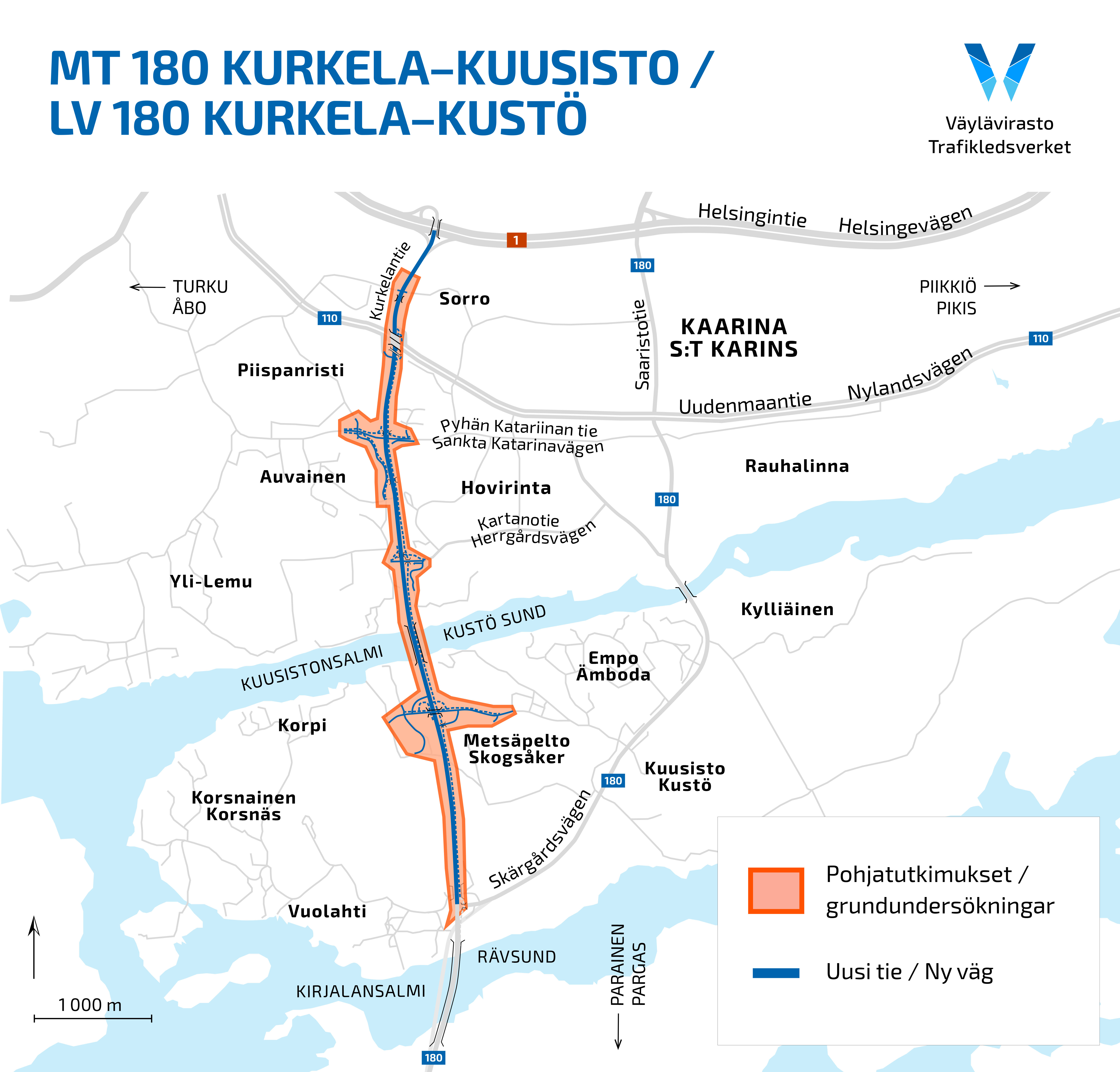 Mt 180 Kurkela-Kuusisto-hankkeen keskeinen tavoite on seudullisen tieyhteyden sujuvuus ja turvallisuus. Hankkeessa toteutettavilla tie- ja liittymäjärjestelyillä parannetaan liikenteen sujuvuutta ja liikenneturvallisuutta. Samalla myös tuetaan Kaarinan kaupungin yhdyskuntarakenteen ja maankäytön kehittämistä. Hankkeessa rakennetaan uutta tietä maantielle 180 uuteen maastokäytävään noin 3,5 kilometriä, ja maantietä parannetaan kaksiajorataiseksi ja nelikaistaiseksi noin 1,3 kilometrin matkalta. Hankkeessa rakennetaan tai uusitaan 9 maantiesiltaa, mukaan lukien Kuusistonsalmen ylle rakennettava Auvaisbergin silta. Hankkeessa toteutetaan laajasti melusuojausta ja pohjanvahvistuksia sekä ratkaisuja kävelyn ja pyöräilyn väylille sekä yksityistiejärjestelyitä. Hankkeen kustannusarvio on 114,4 miljoonaa euroa.