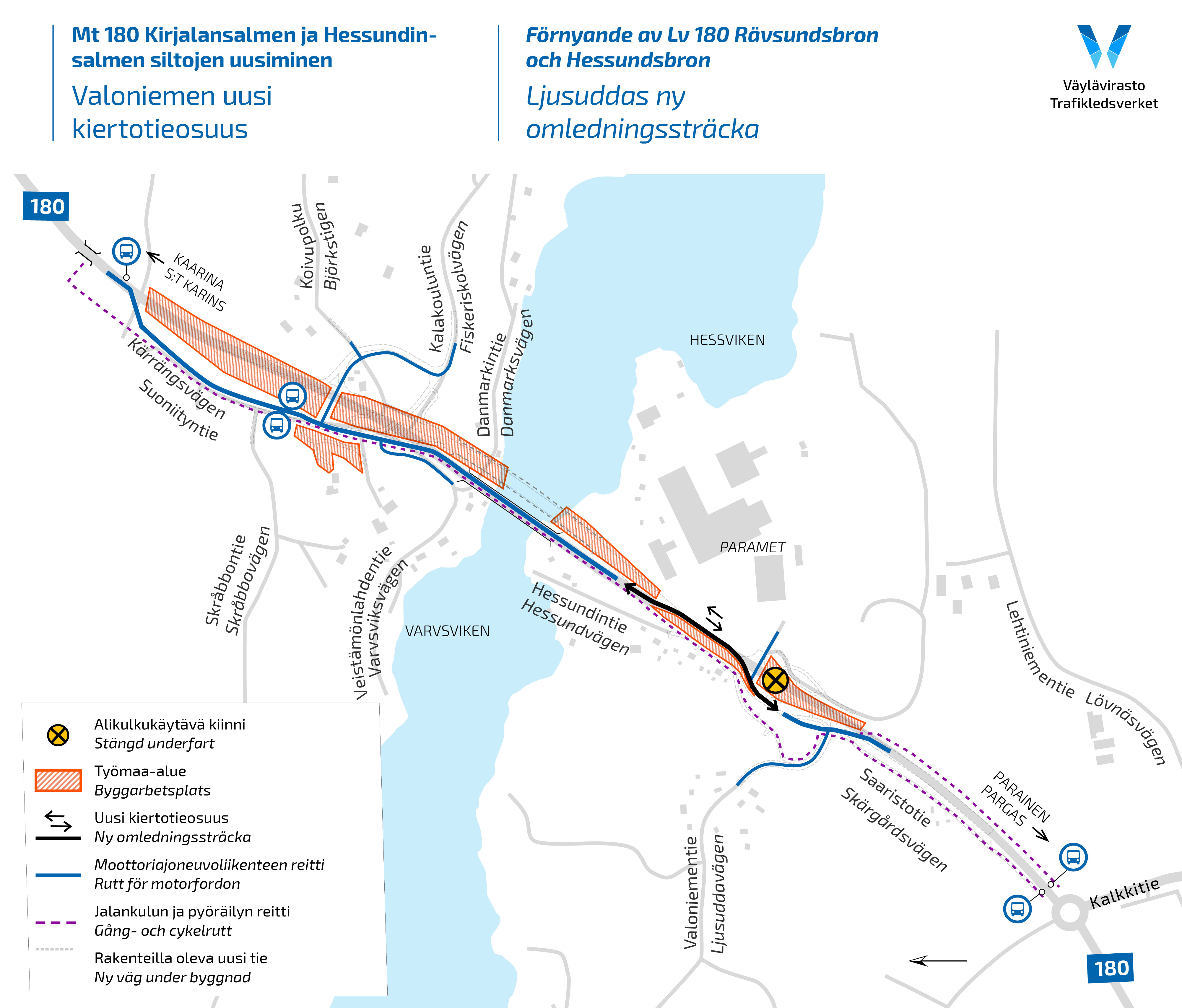 Projektet Förnyande av Lv 180 Rävsundsbron och Hessundsbron: den nya omledningssträckan tas i bruk vid Ljusuddavägen