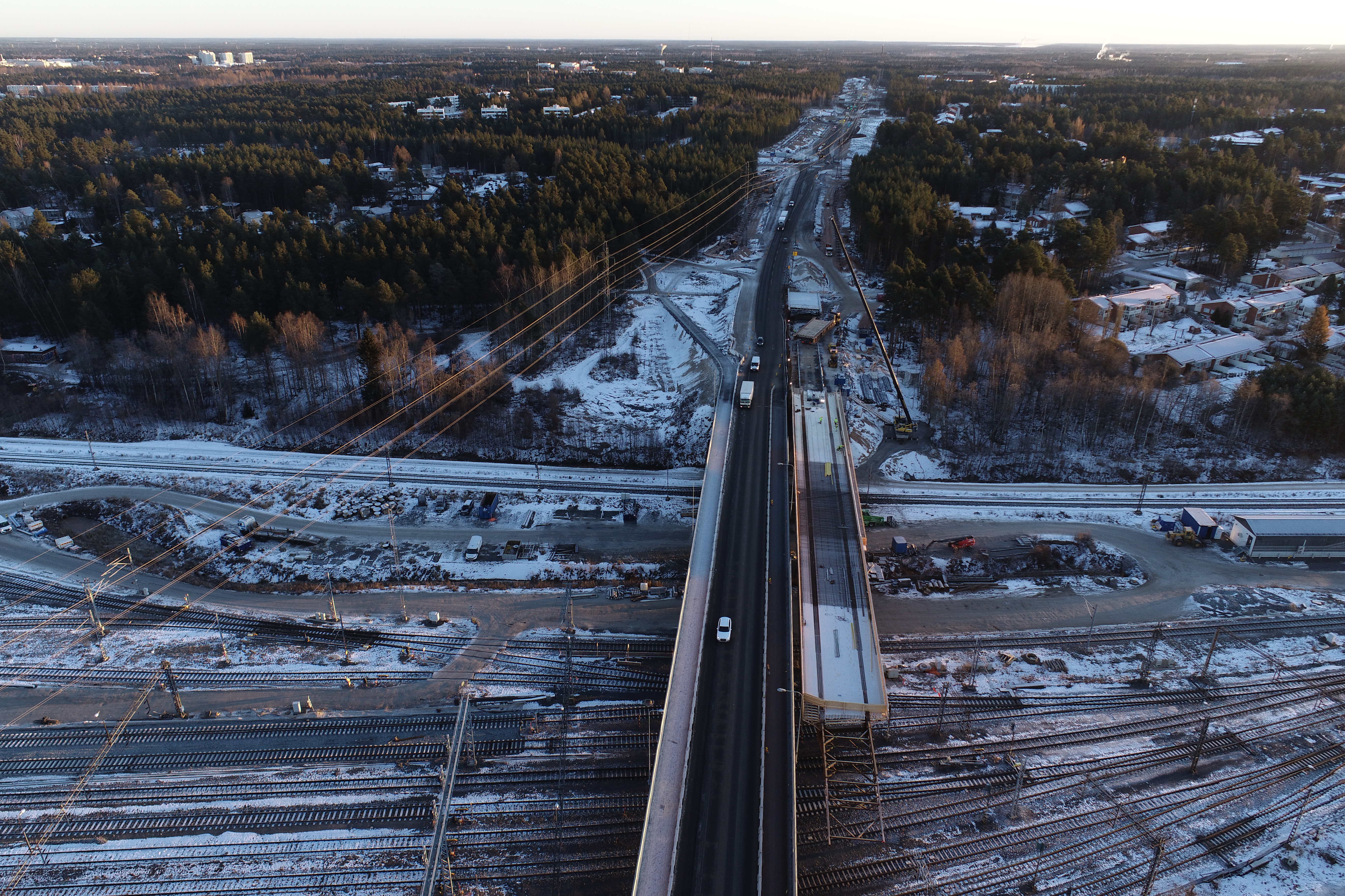 “Työt ovat edenneet tänä vuonna mukavasti. Saamme vielä tänään 29.11. merkittävän työvaiheen valmiiksi, kun junaradan ylittävän sillan uudet rakenteet on saatu paikoilleen. Keväällä pääsemme tälläkin kohdalla rakentamaan tierakenteita”, kertoo projektipäällikkö Jukka Päkkilä Väylävirastosta.