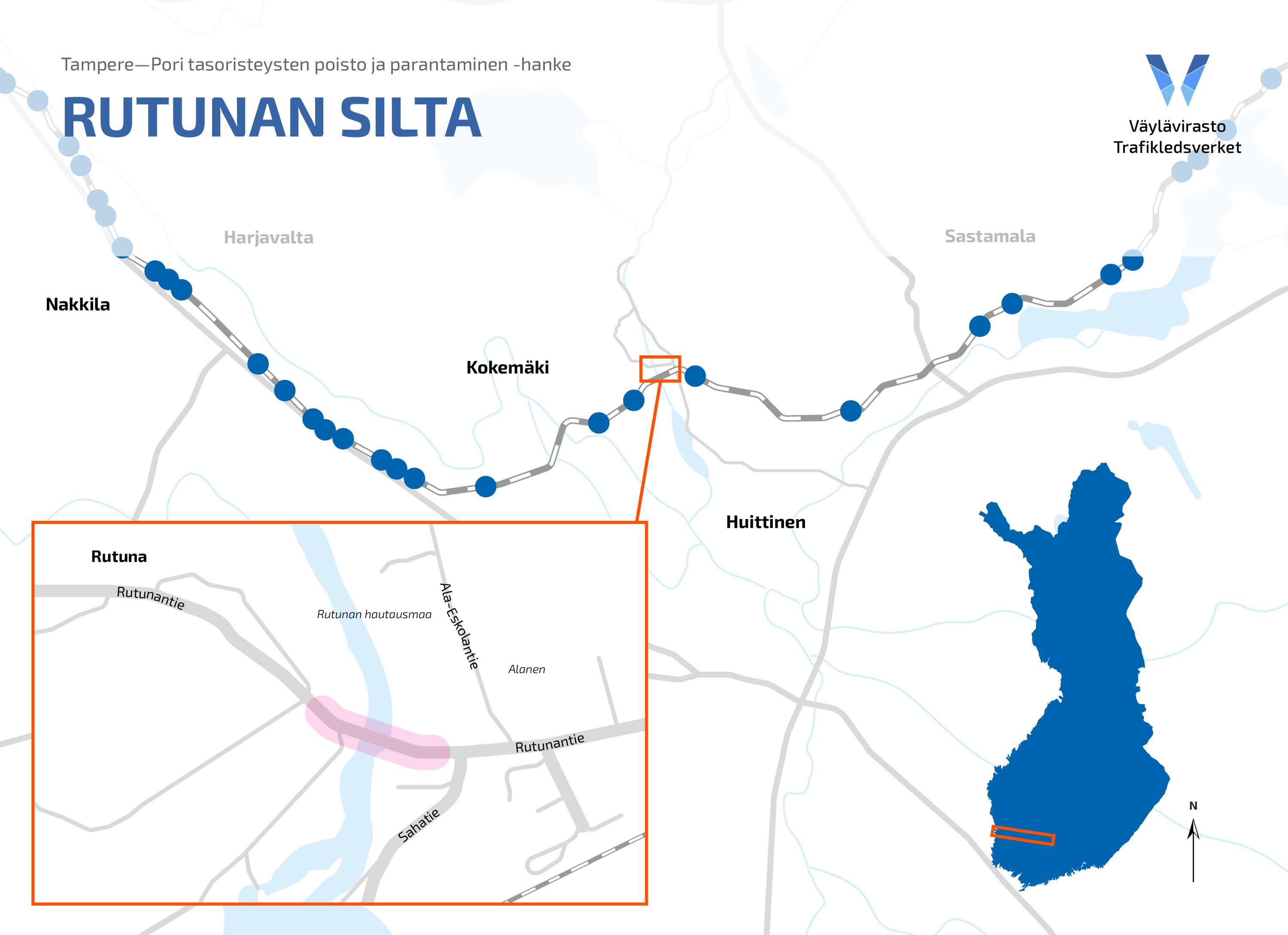 Rutunan siltaurakka on osa Tampere-Pori tasoristeysten poisto ja parantaminen -hanketta, jonka tavoitteena on parantaa liikenneturvallisuutta poistamalla mahdollisimman monta rataosuuden tasoristeystä sekä lisätä turvallisuutta kustannustehokkailla keinoilla.
