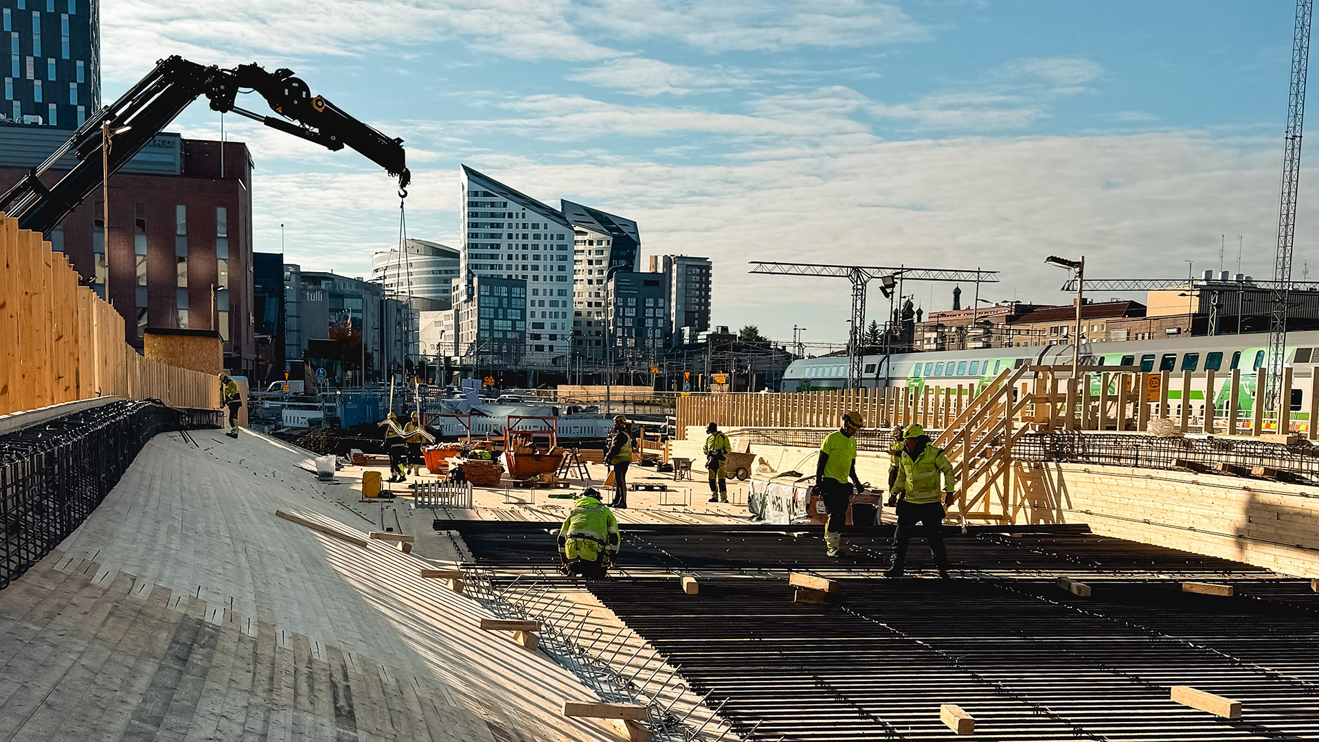 – Yli 30 tuntia kestävien valutöiden aikana betonia kuljetetaan työmaalle 170 autollista. Työvaihe näkyy Ratapihankadulla ajoittain lisääntyvänä työmaaliikenteenä, mutta erityisempiä vaikutuksia liikenteeseen ei pitäisi tulla. Valupaikka ei ole hankalin mahdollinen, mutta suunniteltavaa on riittänyt, kertoo projektipäällikkö Jetro Matilainen Väylävirastosta.