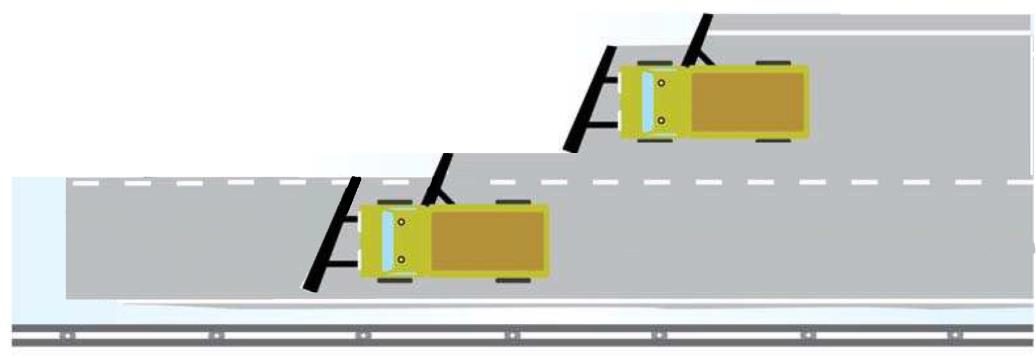 Moottoritien auraus kahta sivuaurallista yksikköä käytettäessä. Yksiköiden välien etäisyys pidetään niin pienenä, että ohittaminen on mahdotonta.