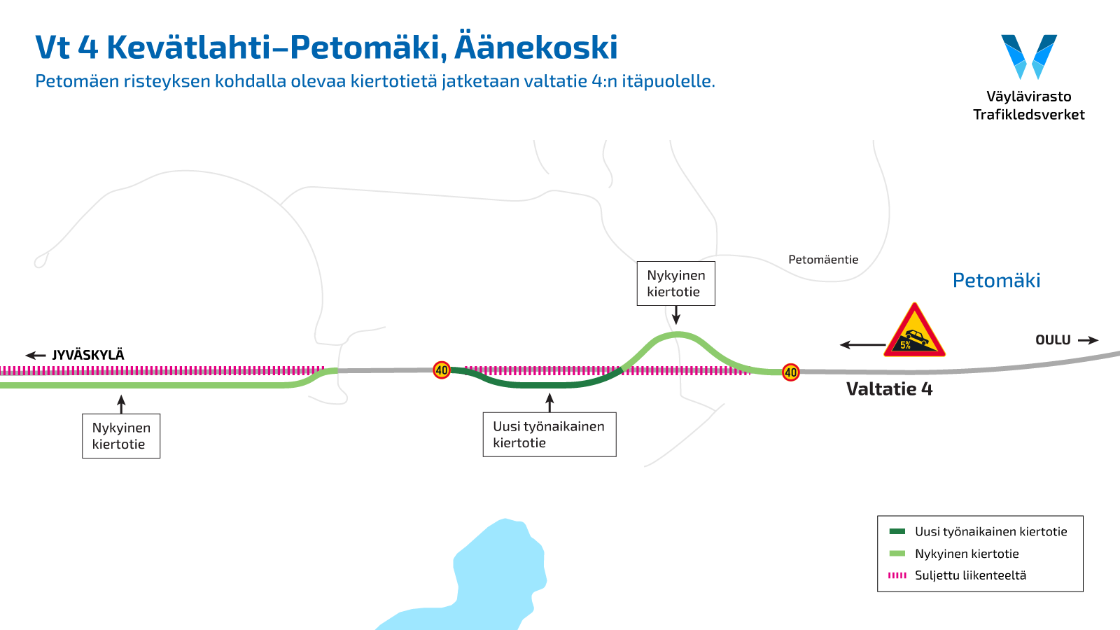 Valtatie 4 Kevätlahti–Petomäki: Petomäkeen uusi kiertotie Enolanpuron kohdalle 2.9.2024