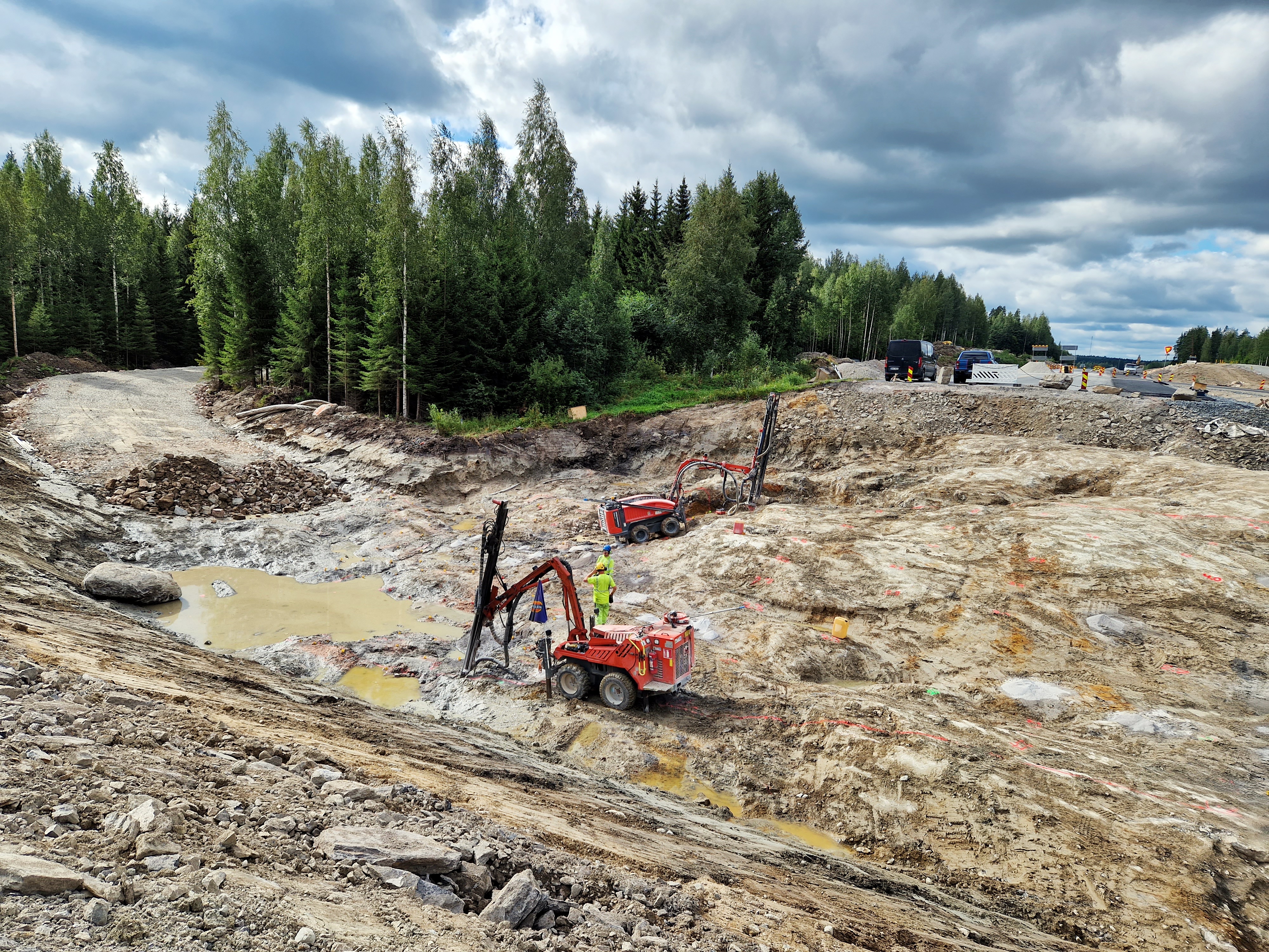 Kuva 3. Mikkelin suuntaan kulkevan ohituskaistan pidennys rakentuu Kalkkivuoren liittymän luoteispuolella.