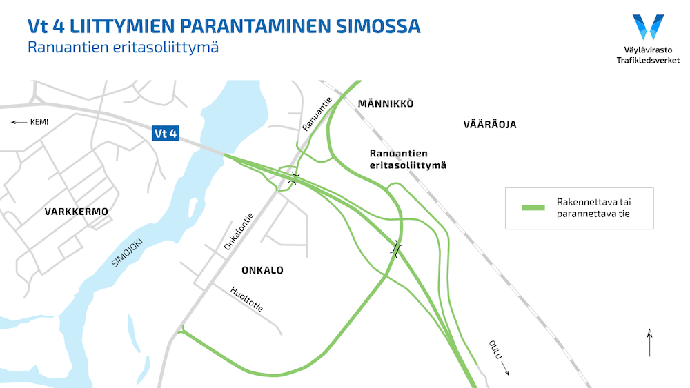 Väylävirasto tekee uuden kilpailutuksen pelkästään Ranuantien eritasoliittymästä. Tämä kilpailutus käynnistetään nyt nopeasti. Simon taajaman kohdan osalta hankkeen erillisestä hankinnasta päätetään myöhemmin syksyllä.