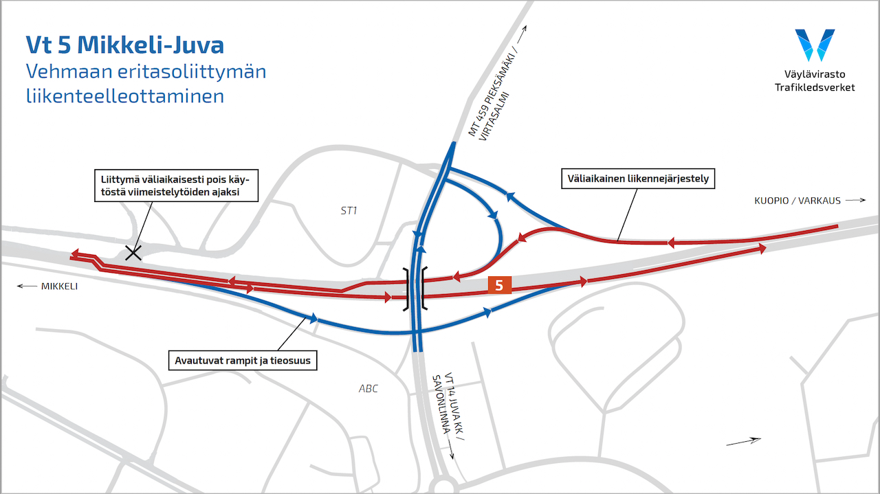 Vt 5 Mikkeli-Juva: Vehmaan eritasoliittymä otetaan käyttöön