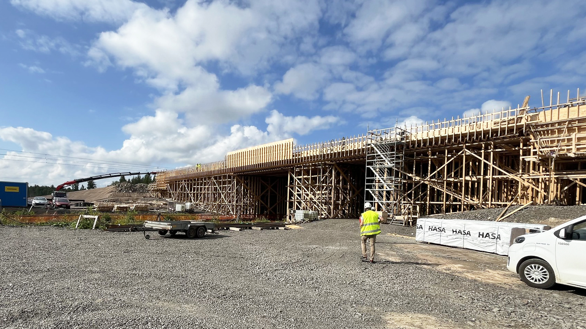 Lahti–Kouvola-radan ylittävän uuden sillan raudoitustyöt ovat valmistuneet. Sillan kannen valu aloitetaan keskiviikkona 21. elokuuta. Työvaihe kestää lähes vuorokauden, minkä vuoksi siltakohde on valaistuna läpi torstain vastaisen yön.