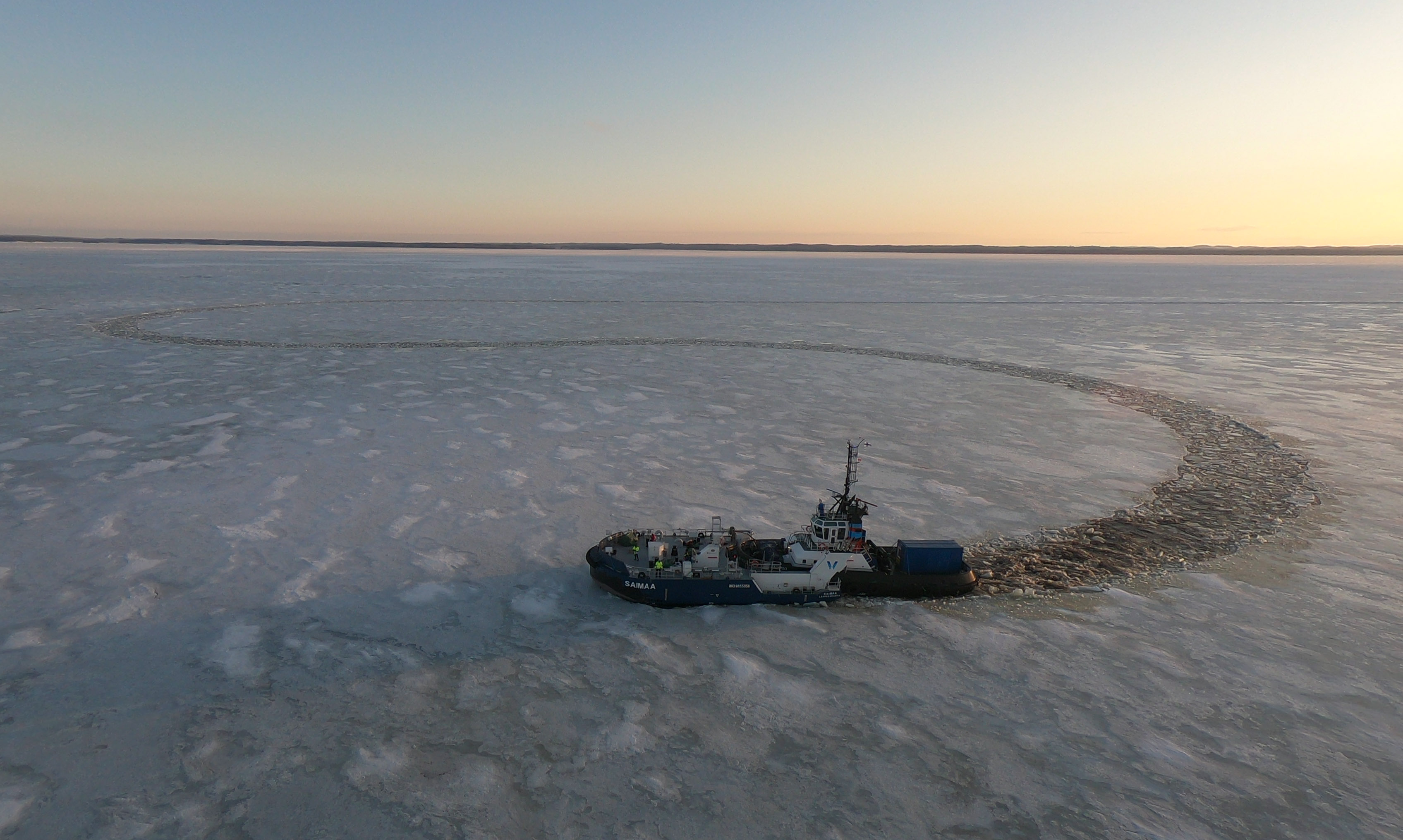 Ice tests in Lake Saimaa were a real test of strength between detachable bow and 60 cm thick ice
