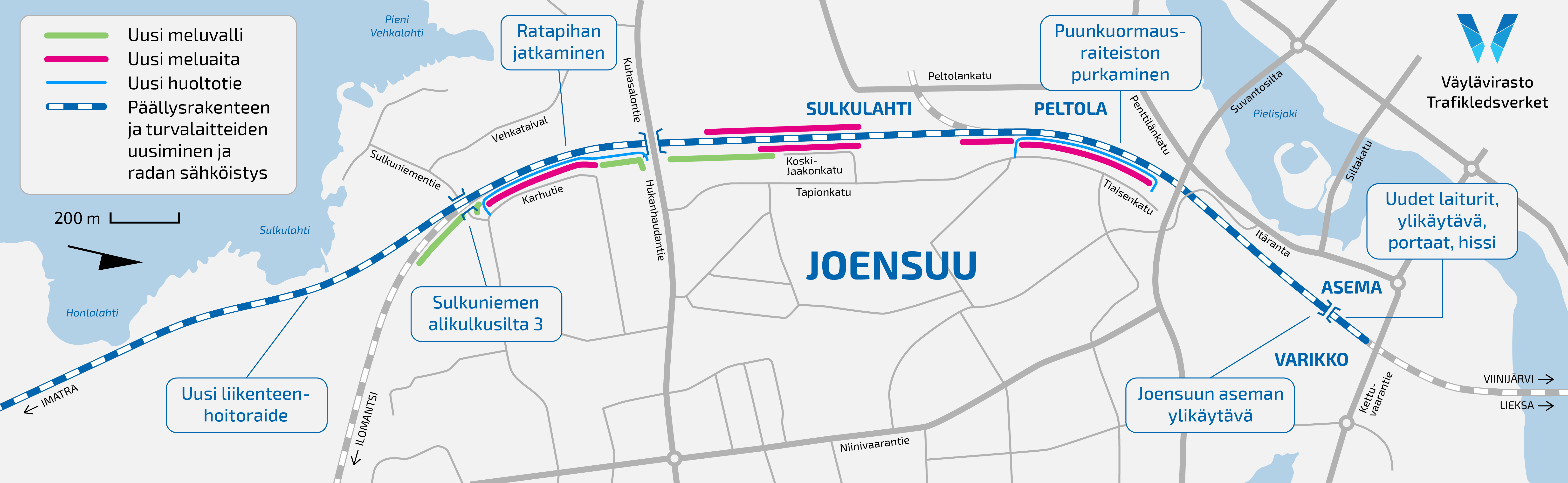 Sulkulahden ratapihaa jatkettiin etelään päin noin 250 metriä. Välittömästi Sulkulahden eteläpuolelle tehtiin uusi liikenteenhoitoraide, josta otetaan yhteys Sulkulahden ratapihalle. Joensuu Peltolan kohdalla olleet vanhat puunkuormausraiteet purettiin. Joensuu Sulkulahti ja Joensuu Peltola erotettiin toisistaan vaihdekujalla.