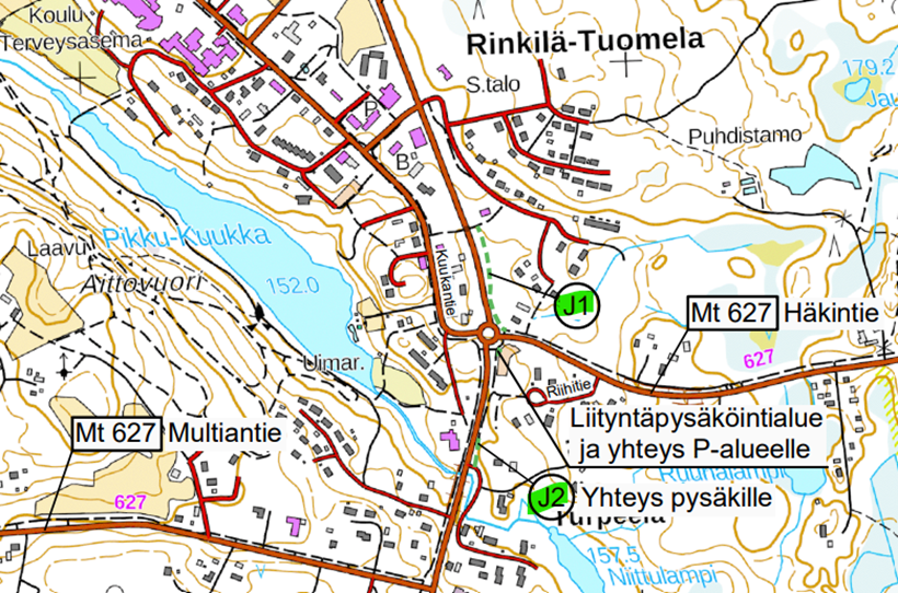 Saarijärventien itäpuolelle rakennettava väylä (J1) sijoittuu välille kiertoliittymä – Rinkilän alikulkukäytävä, väylän pituus on noin 200 metriä ja se yhdistyy molemmissa päissä olemassa oleviin jalankulku- ja pyöräilyväyliin. Jyväskyläntien itäpuolelle rakennettava väylä (J2) sijoittuu välille nykyinen linja-autopysäkki – Niitynlammentie, väylän pituus on noin 50 metriä ja se yhdistyy linja-autopysäkin puoleisessa päässä olemassa olevaan jalankulku- ja pyöräilyväylään. Lisäksi toteutetaan katoksellinen polkupyörien liityntäpysäköintialue kiertoliittymän viereiselle pysäköintialueelle.