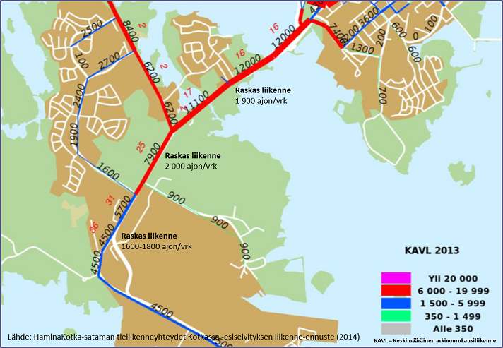 - Satama- ja paikallisliikenne nykyisellä tiellä.