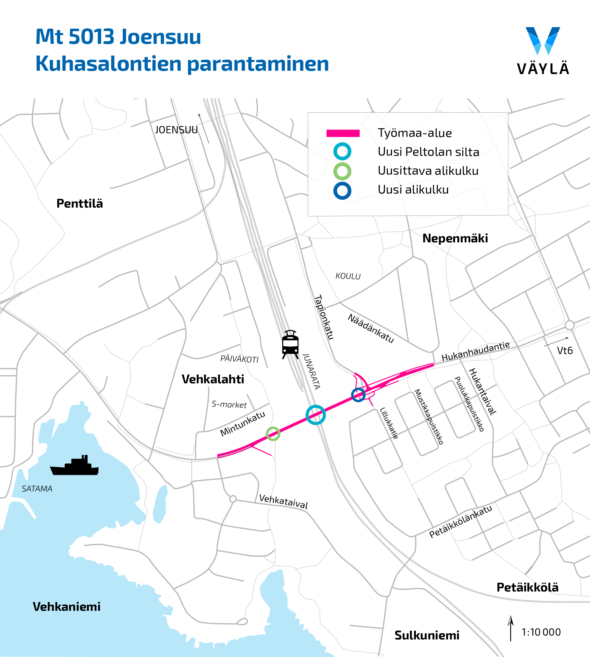 Hankkeessa korjattiin Vehkaniemen alikulkukäytävä ja rakennettiin uusi Tapion alikulkukäytävä parantamaan jalankulku- ja pyöräilyväylän yhteyksiä ja turvallisuutta.