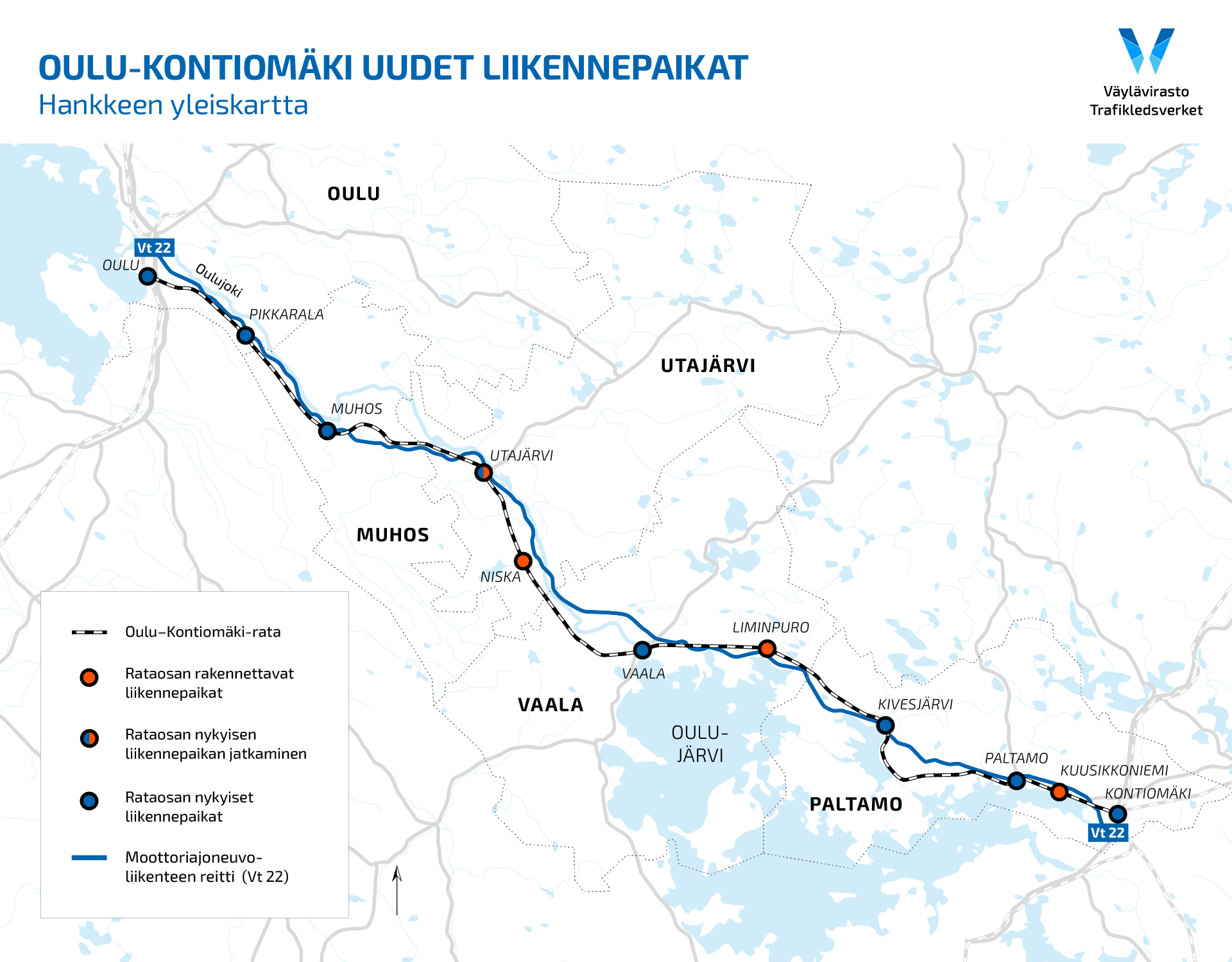 Oulu–Kontiomäki-hankkeen kartta, avautuu samaan selainikkunaan. Näkymää voi suurentaa kartan päällä näkyvän suurennuslasin avulla.