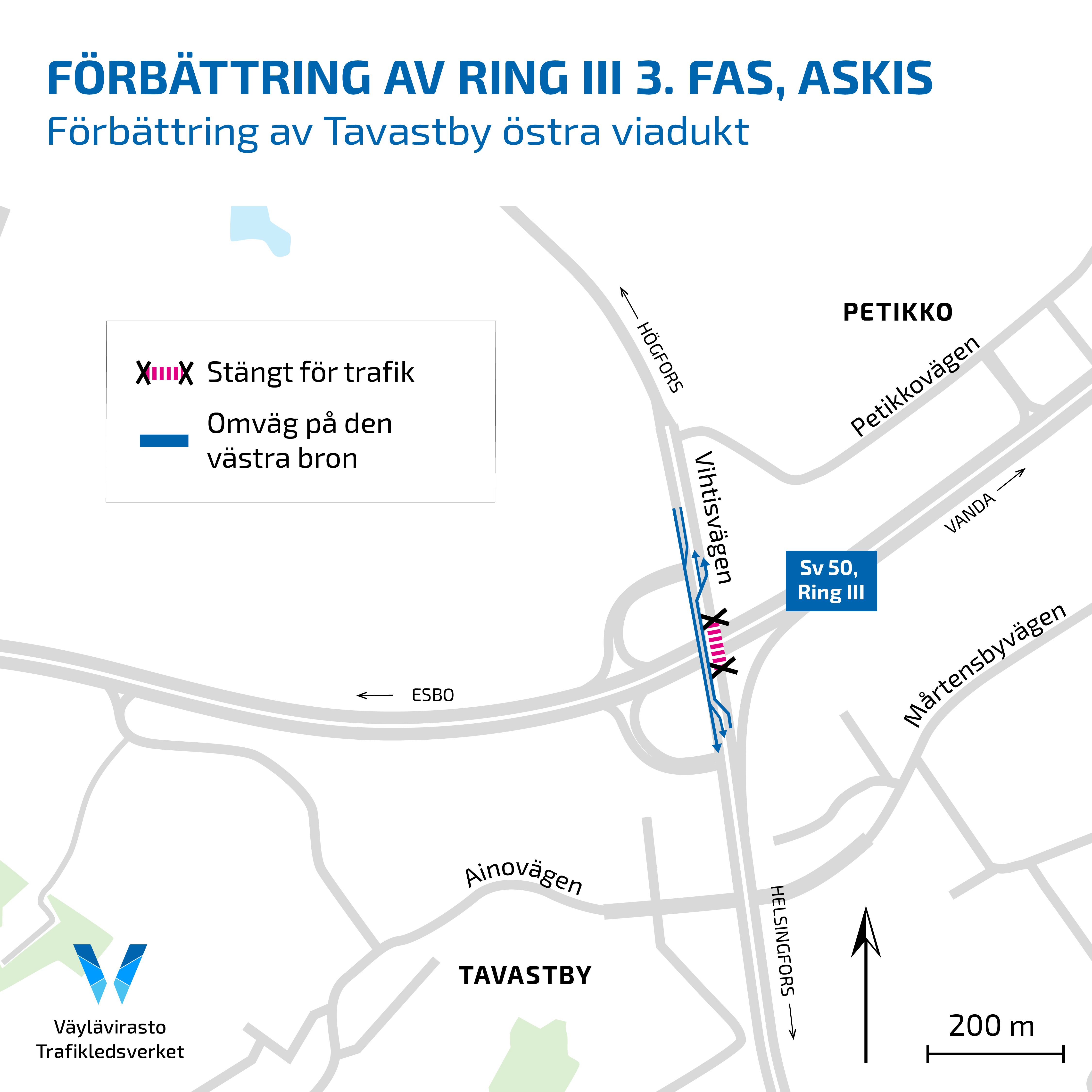 Tredje etappen av förbättringsprojektet på Ring III omfattar många förbättringar som genomförs i Askis och mellan Vandafors och Backas. I projektet ingår bland annat byggandet av tredje körfält mellan Vandafors och Backas, byggandet av en ny planskild anslutning till Askis samt upprustning av vägens bottenkonstruktion. Samtidigt kommer gång- och cykelförbindelserna att utvecklas. Bullerskyddet vid Askis kommer att förbättras. Målsättningen är att öka trafikens säkerhet och smidighet samt att förbereda för de ökande trafikmängderna på Ring III.