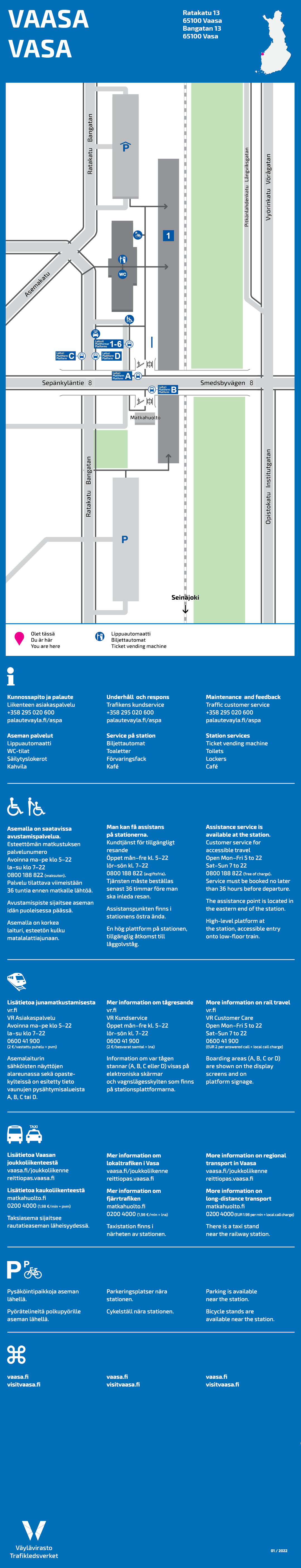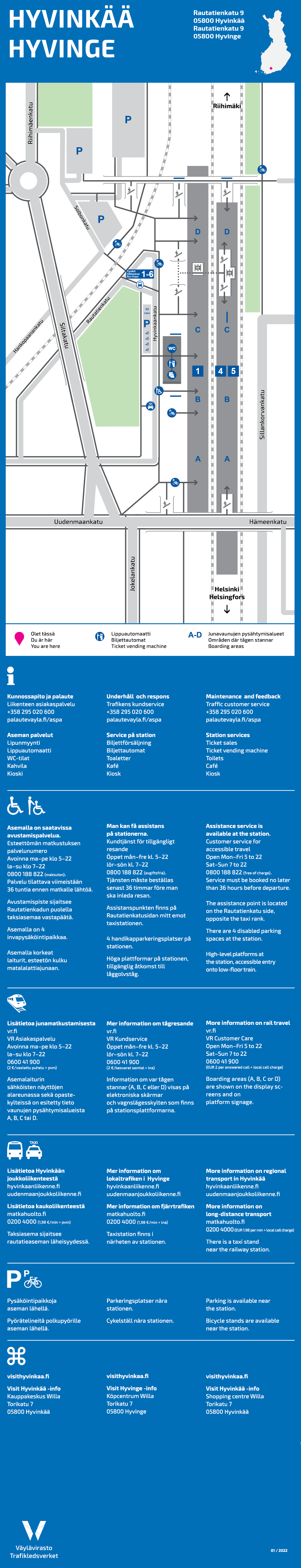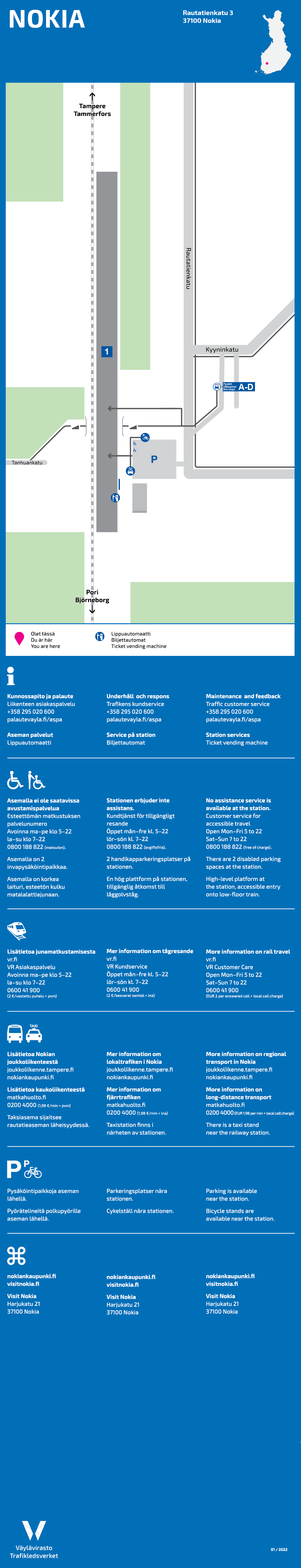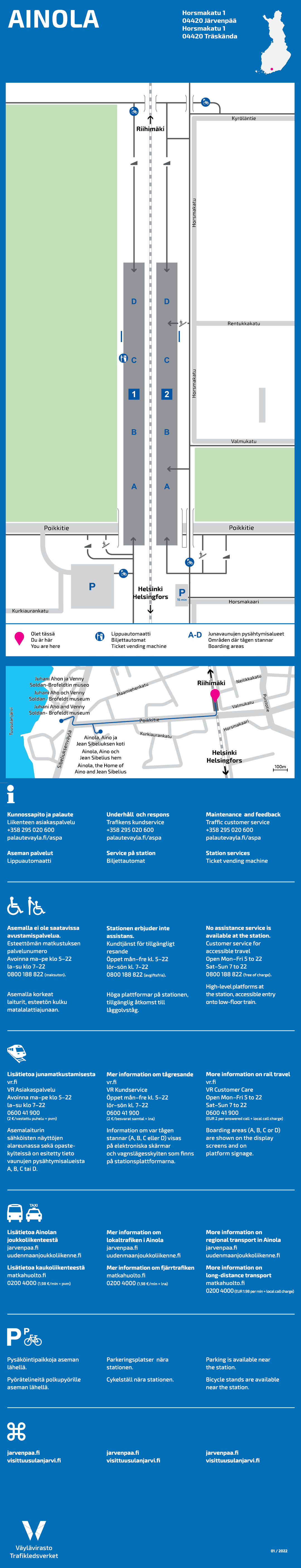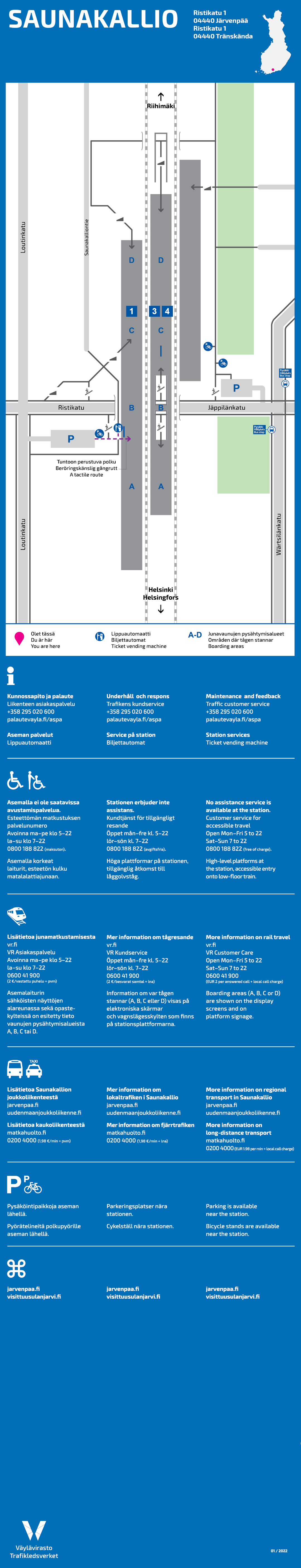 Kartor över stationerna närområden visar för den resande kommunikationsmedel, åtkomliga rutter, service, viktiga ställen i närheten av stationer samt kontaktuppgifter för taxi- och feedback. Kartorna är placerade i skåp för tidtabeller vid plattformar och stationstunnlar.