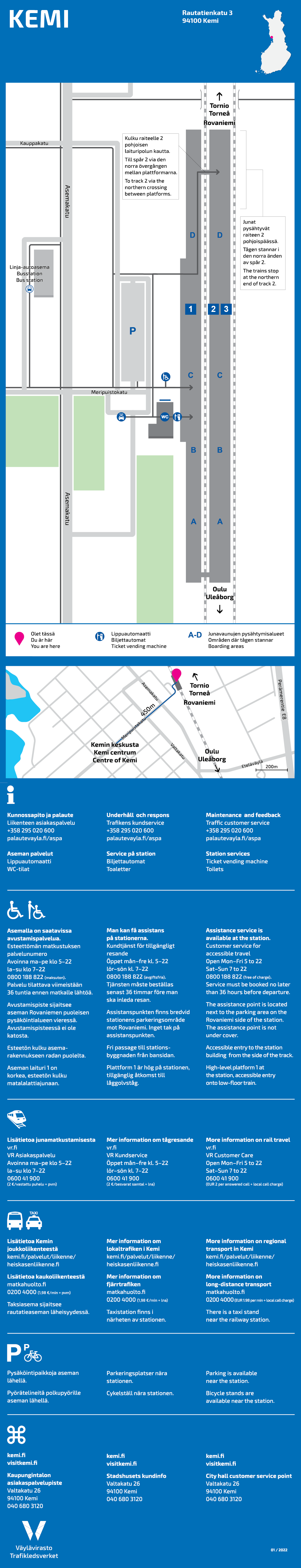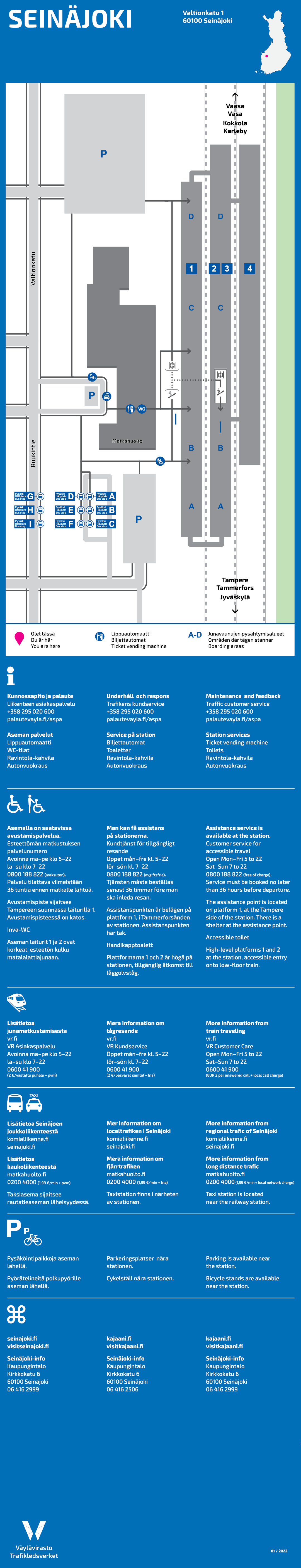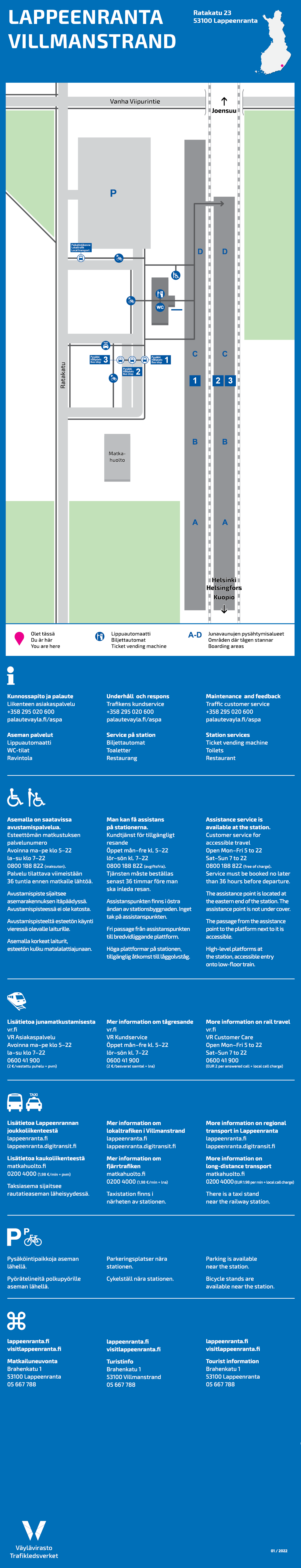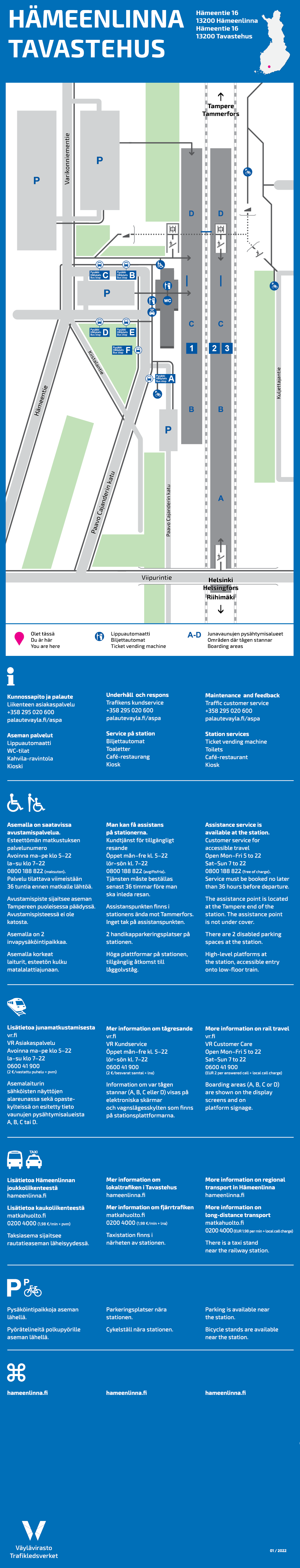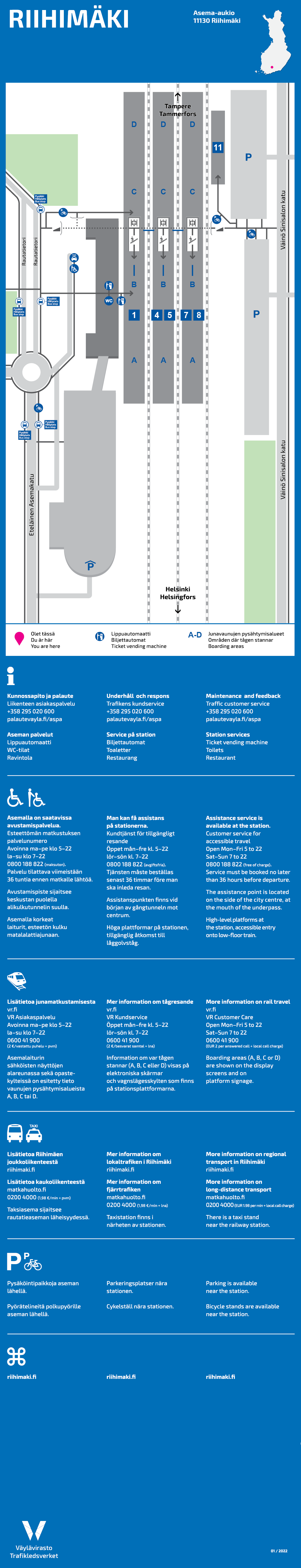 Kartor över stationerna närområden visar för den resande kommunikationsmedel, åtkomliga rutter, service, viktiga ställen i närheten av stationer samt kontaktuppgifter för taxi- och feedback. Kartorna är placerade i skåp för tidtabeller vid plattformar och stationstunnlar.