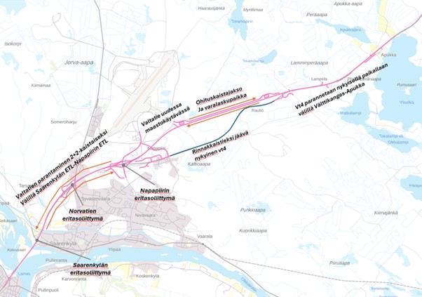 - Saarenkylän sekä Norvajärven eritasoliittymiä parannetaan ja Lentokentäntien liittymä muutetaan eritasoliittymäksi (Napapiirin eritasoliittymä).