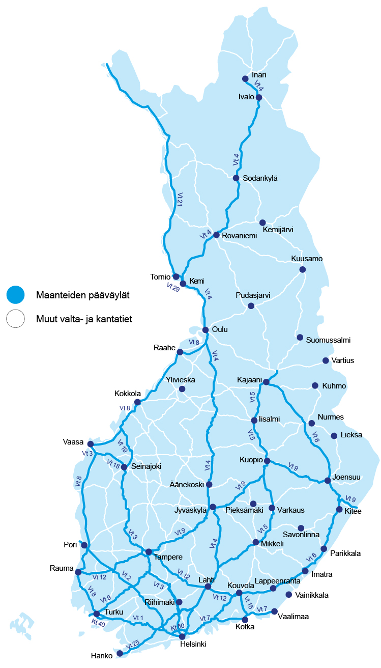 Pääväylät yhdistävät valtakunnallisesti ja kansainvälisesti suurimmat keskukset ja solmukohdat, ja ne palvelevat erityisesti pitkien etäisyyksien työmatkaliikennettä sekä elinkeinoelämän tavarakuljetuksia. Kaikkiin maakuntakeskuksiin ulottuu maanteiden ja rautateiden pääväylä.