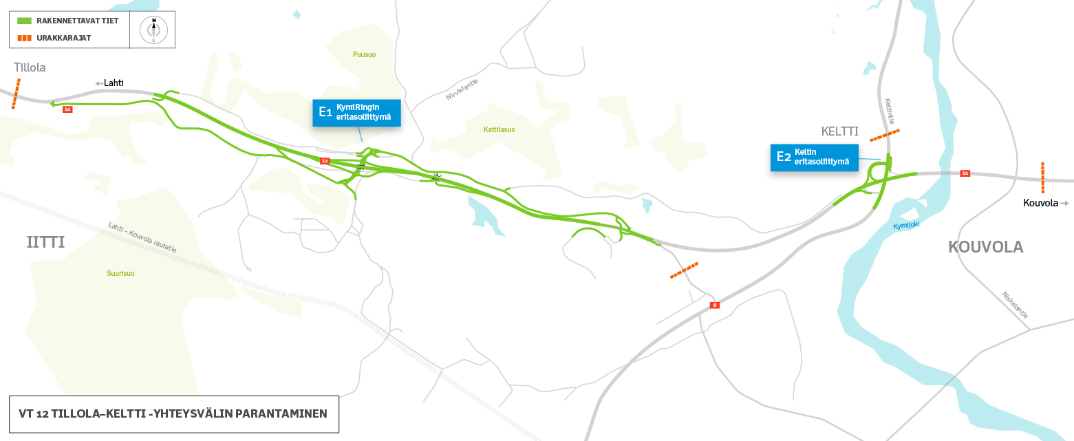 Valtatie 12:n itäpäähän toteutetun KymiRing-moottoriratakeskuksen kohdalle rakennettiin eritasoliittymä, joka palvelee alueen maankäyttöä. Nykyistä Keltin eritasoliittymää parannettiin pohjoispuolen uusilla rampeilla ja meluntorjunnalla.