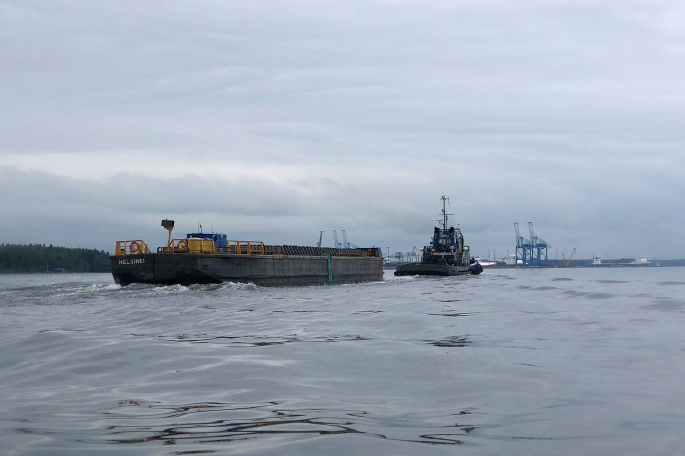 Lastialus hinauksessa Vuosaaren meriläjitysalueelle.
